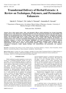 Vichare, Sakshi S. and Nemade, Dr. Lalita S. and Gavade, Anuradha E. (2025) Transdermal Delivery of Herbal Extracts: A Review on Techniques, Polymers, and Permeation Enhancers. International Journal of Innovative Science and Research Technology, 10 (8): 25aug1257. pp. 2115-2120. ISSN 2456-2165