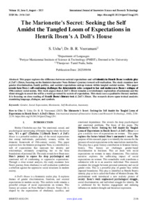 Usha, S. and Veeramani, Dr. B. R. (2025) The Marionette’s Secret: Seeking the Self Amidst the Tangled Loom of Expectations in Henrik Ibsen’s A Doll’s House. International Journal of Innovative Science and Research Technology, 10 (8): 25aug1291. pp. 2136-2139. ISSN 2456-2165