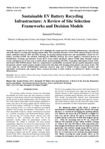 Ferdous, Jannatul (2025) Sustainable EV Battery Recycling Infrastructure: A Review of Site Selection Frameworks and Decision Models. International Journal of Innovative Science and Research Technology, 10 (8): 25aug987. pp. 2243-2258. ISSN 2456-2165