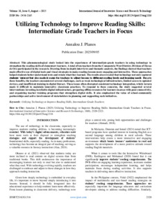 Planos, Annalou J. (2025) Utilizing Technology to Improve Reading Skills: Intermediate Grade Teachers in Focus. International Journal of Innovative Science and Research Technology, 10 (8): 25aug1316. pp. 2320-2323. ISSN 2456-2165