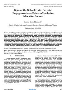 Masahudu, Salawu-Deen (2025) Beyond the School Gate: Parental Engagement as a Driver of Inclusive Education Success. International Journal of Innovative Science and Research Technology, 10 (8): 25aug1460. pp. 2472-2479. ISSN 2456-2165