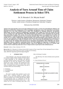 The turnaround time (TAT) in the claim settlement process plays a crucial role in determining the efficiency and effectiveness of Third Party Administrators (TPAs) in healthcare and insurance sectors. This study focuses on the factors impacting TAT in the claim settlement process within TPAs, identifying key challenges, bottlenecks, and potential improvements. The data is collected by administering a questionnaire with a sample size of 150 to the selected TPA staff who are working in pre auth department, CRM, billing department and medical scrutiny department and also through direct observations of claims. The Average TAT for the claim settlement process was calculated for 60 cashless, 60 reimbursement, 20 additional payments, and 10 deduction payments claims. The major findings of the study are, the average TAT for cashless, reimbursement, addition payments, and deduction payments claim settlement is 85.05, 66.2, 47.55, 23.7 days respectively. The study also found the reasons for the delay in the claim settlement process and increase of TAT in claim settlement process. Delay in document recovery, delay in processing and dispatching cheques are found as the major reasons. By examining both internal (process management, documentation, claim verification) and external (policyholder behavior, regulatory requirements) factors, the study highlights the importance of optimizing TAT to enhance customer satisfaction and operational efficiency. Some of the suggestions of the study are to increase staff, decrease time for transferring claims and at issue of cheques and has to speed up the claim settlement process.