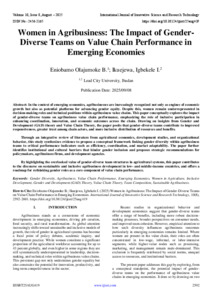 Olajumoke B., Eniobamo and Igbekele I., Ikuejewa, (2025) Women in Agribusiness: The Impact of Gender- Diverse Teams on Value Chain Performance in Emerging Economies. International Journal of Innovative Science and Research Technology, 10 (8): 25aug419. pp. 2592-2601. ISSN 2456-2165