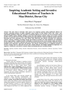 Paganpan, Anna Rhea I. (2025) Inspiring Academic Setting and Inventive Educational Practices of Teachers in Maa District, Davao City. International Journal of Innovative Science and Research Technology, 10 (8): 25aug967. pp. 2630-2643. ISSN 2456-2165