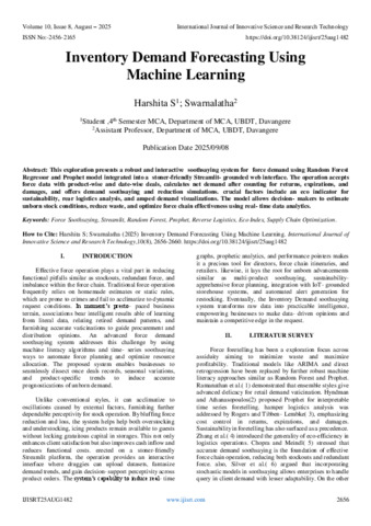 S, Harshita and ., Swarnalatha (2025) Inventory Demand Forecasting Using Machine Learning. International Journal of Innovative Science and Research Technology, 10 (8): 25aug1482. pp. 2656-2660. ISSN 2456-2165