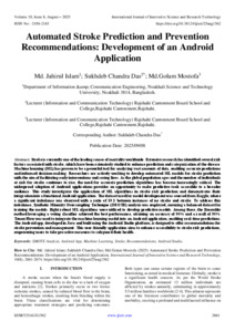 Islam, Md. Jahirul and Das, Sukhdeb Chandra and Mostofa, Md.Golam (2025) Automated Stroke Prediction and Prevention Recommendations: Development of an Android Application. International Journal of Innovative Science and Research Technology, 10 (8): 25aug1562. pp. 2661-2674. ISSN 2456-2165