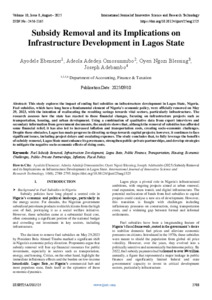Ebenezer, Ayodele and Omosunmibo, Adeola Adedeji and Blessing, Oyeri Ngozi and Adebambo, Joseph (2025) Subsidy Removal and its Implications on Infrastructure Development in Lagos State. International Journal of Innovative Science and Research Technology, 10 (8): 25aug1525. pp. 2788-2795. ISSN 2456-2165