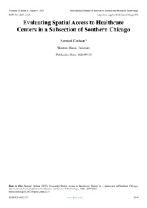 Dadson, Samuel (2025) Evaluating Spatial Access to Healthcare Centers in a Subsection of Southern Chicago. International Journal of Innovative Science and Research Technology, 10 (8): 25aug1274. pp. 2849-2863. ISSN 2456-2165