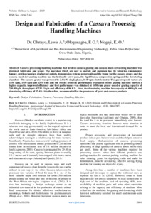 Lewis A., Dr. Olutayo, and F. O., Ologunagba, and K. O., Mogaji, (2025) Design and Fabrication of a Cassava Processig Handling Machines. International Journal of Innovative Science and Research Technology, 10 (8): 25aug1396. pp. 2864-2872. ISSN 2456-2165