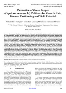 Morojele, Motlatsi Eric and Lesesa, Koenehelo and Motake, Motanyane Stanislaus (2025) Evaluation of Green Pepper (Capsicum annuum L.) Cultivars for Growth Rate, Biomass Partitioning and Yield Potential. International Journal of Innovative Science and Research Technology, 10 (8): 25aug1344. pp. 2886-2893. ISSN 2456-2165