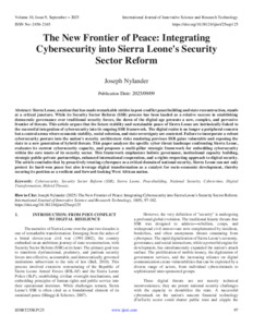 Nylander, Joseph (2025) The New Frontier of Peace: Integrating Cybersecurity into Sierra Leone's Security Sector Reform. International Journal of Innovative Science and Research Technology, 10 (9): 25sep125. pp. 97-102. ISSN 2456-2165