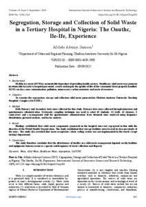 Samson, Afolabi Adeniyi (2025) Segregation, Storage and Collection of Solid Waste in a Tertiary Hospital in Nigeria: The Oauthc, Ile-Ife, Experience. International Journal of Innovative Science and Research Technology, 10 (8): 25sep203. pp. 145-154. ISSN 2456-2165
