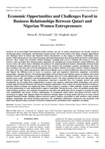 Al-Suwaidi, Hessa K. and Ajose, Osigbodi (2025) Economic Opportunities and Challenges Faced in Business Relationships Between Qatari and Nigerian Women Entrepreneurs. International Journal of Innovative Science and Research Technology, 10 (8): 25aug927. pp. 2990-3005. ISSN 2456-2165