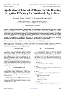 Kumar Prabhat, Pratyush and Kumar Singh, Dr. Kaushlesh (2025) Application of Internet of Things (IoT) in Boosting Irrigation Efficiency for Sustainable Agriculture. International Journal of Innovative Science and Research Technology, 10 (8): 25aug1573. pp. 3009-3014. ISSN 2456-2165