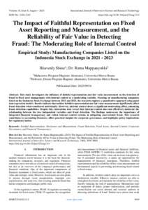 Shine, Heavenly and Mappanyukki, Dr. Ratna (2025) The Impact of Faithful Representation on Fixed Asset Reporting and Measurement, and the Reliability of Fair Value in Detecting Fraud: The Moderating Role of Internal Control. International Journal of Innovative Science and Research Technology, 10 (8): 25aug1313. pp. 3049-3060. ISSN 2456-2165