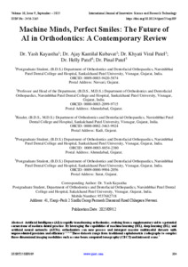 Kayastha, Dr. Yash and Kubavat, Dr. Ajay Kantilal and Viral Patel, Dr. Khyati and Patel, Dr. Helly and Patel, Dr. Pinal (2025) Machine Minds, Perfect Smiles: The Future of AI in Orthodontics: A Contemporary Review. International Journal of Innovative Science and Research Technology, 10 (9): 25sep389. pp. 304-310. ISSN 2456-2165