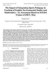 Jamir, Tongdi (2025) The Impact of Integrating Sports Pedagogy in Teaching of English, Environmental Studies and Mathematics - An Assessment Based on D.El.Ed Trainee of DIET, Mon. International Journal of Innovative Science and Research Technology, 10 (9): 25sep323. pp. 527-536. ISSN 2456-2165
