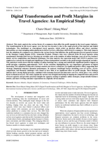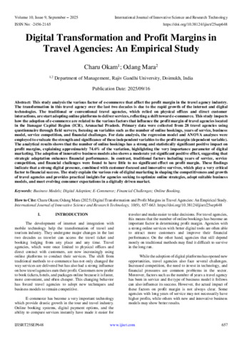 Okam, Charu and Mara, Odang (2025) Digital Transformation and Profit Margins in Travel Agencies: An Empirical Study. International Journal of Innovative Science and Research Technology, 10 (9): 25sep648. pp. 657-663. ISSN 2456-2165
