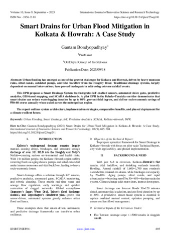 Bondyopadhyay, Gautam (2025) Smart Drains for Urban Flood Mitigation in Kolkata & Howrah: A Case Study. International Journal of Innovative Science and Research Technology, 10 (9): 25sep241. pp. 695-704. ISSN 2456-2165