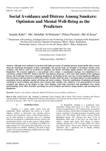 Kabir, Sanjida and Moktader, Md. Abdullah Al and Parmita, Pritiza and Insan, Md Al (2025) Social Avoidance and Distress Among Smokers: Optimism and Mental Well-Being as the Predictors. International Journal of Innovative Science and Research Technology, 10 (9): 25sep491. pp. 746-751. ISSN 2456-2165