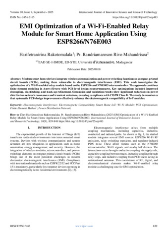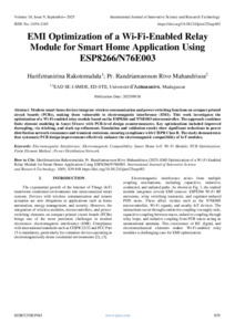 Rakotomalala, Harifetranirina and Mahandrisoa, Pr. Randriamaroson Rivo (2025) EMI Optimization of a Wi-Fi-Enabled Relay Module for Smart Home Application Using ESP8266/N76E003. International Journal of Innovative Science and Research Technology, 10 (9): 25sep483. pp. 839-848. ISSN 2456-2165