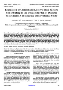 R., Maheema and U., Priyadharshini and Sundresh, Dr. N. Junior (2025) Evaluation of Clinical and Lifestyle Risk Factors Contributing to the Disease Burden of Diabetic Foot Ulcers: A Prospective Observational Study. International Journal of Innovative Science and Research Technology, 10 (9): 25sep698. pp. 898-902. ISSN 2456-2165