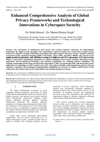 Kumar, Dr. Rohit and Singh, Dr. Manish Kumar (2025) Enhanced Comprehensive Analysis of Global Privacy Frameworks and Technological Innovations in Cyberspace Security. International Journal of Innovative Science and Research Technology, 10 (9): 25sep690. pp. 970-977. ISSN 2456-2165