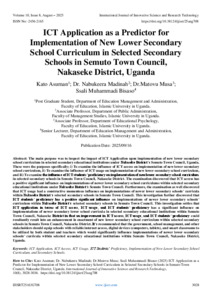 Asuman, Kato and Madinah, Dr. Nabukeera and Musa, Dr. Matovu and Bisaso, Ssali Muhammadi (2025) ICT Application as a Predictor for Implementation of New Lower Secondary School Curriculum in Selected Secondary Schools in Semuto Town Council, Nakaseke District, Uganda. International Journal of Innovative Science and Research Technology, 10 (8): 25aug708. pp. 3028-3036. ISSN 2456-2165