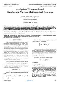 Rani, Suman and Pal, Dr. Rajiv (2025) Analysis of Transcendental Numbers in Various Mathematical Domains. International Journal of Innovative Science and Research Technology, 10 (9): 25sep737. pp. 1637-1640. ISSN 2456-2165