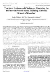Haji, Balkis Makame and Mwakalinga, Shadrack (2025) Teachers’ Actions and Challenges Hindering the Practice of Project-Based Learning in Public Schools of Zanzibar. International Journal of Innovative Science and Research Technology, 10 (9): 25sep886. pp. 1270-1275. ISSN 2456-2165