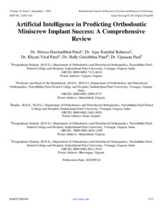 Patel, Dr.Shreya Harshadbhai and Kubavat, Dr.Ajay Kantilal and Patel, Dr.Khyati Viral and Patel, Dr.Helly Girishbhai and Paul, Dr.Upasana (2025) Artificial Intelligence in Predicting Orthodontic Miniscrew Implant Success: A Comprehensive Review. International Journal of Innovative Science and Research Technology, 10 (9): 25sep485. pp. 1375-1383. ISSN 2456-2165