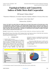 Somani, RP and Akhtar, Farhan (2025) Topological Indices and Connectivity Indices of Delhi Metro Rail Corporation. International Journal of Innovative Science and Research Technology, 10 (9): 25sep854. pp. 1384-1391. ISSN 2456-2165