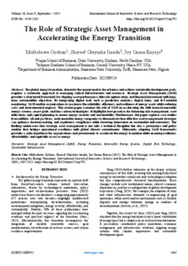Oyekan, Mofeoluwa and Jinadu, Shereef Olayinka and Enyejo, Joy Onma (2025) The Role of Strategic Asset Management in Accelerating the Energy Transition. International Journal of Innovative Science and Research Technology, 10 (9): 25sep792. pp. 1405-1421. ISSN 2456-2165