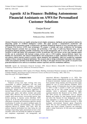 Kumar, Gunjan (2025) Agentic AI in Finance: Building Autonomous Financial Assistants on AWS for Personalized Customer Solutions. International Journal of Innovative Science and Research Technology, 10 (9): 25sep616. pp. 1502-1512. ISSN 2456-2165