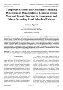 Agarwal, Nisha (2025) Temporary Systems and Competency Building Dimensions in Organizational Learning among Male and Female Teachers in Government and Private Secondary Level Schools of Udaipur. International Journal of Innovative Science and Research Technology, 10 (9): 25sep879. pp. 1577-1582. ISSN 2456-2165